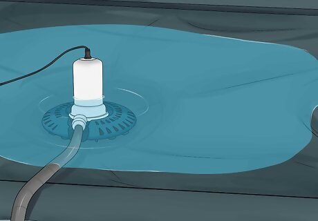 Lower the water level. With above-ground pools, you must lower the water to allow you to remove the pump. Drain to below the return line, but never more than 18 inches (45.7 cm) to prevent stress on the pool cover. To prevent structural damage, never completely empty your above-ground pool. It is important to keep about 1–3 inches (3–8 cm) of water on top of the winter cover to prevent damages caused by wind. You can help secure your liner in place by using “quick clips”; as they are called; in order to hold your cover to the pool frame.