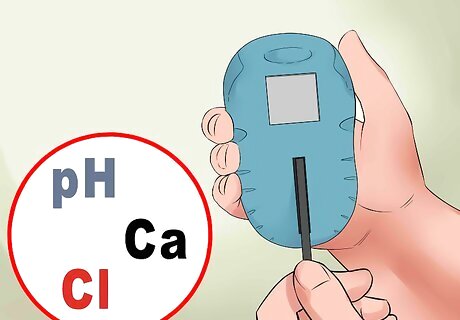 Chemically balance the pool water. Starting the winter with the proper chemicals helps to protect your pool from scale (hard water buildup) and corrosion. Test and adjust the pH, calcium hardness, chlorine and total alkalinity levels as necessary.