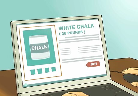 Buy chalk online or at your local sporting goods store. Marking chalk is commonly sold at sporting goods stores in 50-pound bags. You will not need more than 25 pounds (11 kilograms) of marking chalk to chalk a baseball field. Store marking chalk in a cool, dry place between uses to prevent it from clumping.