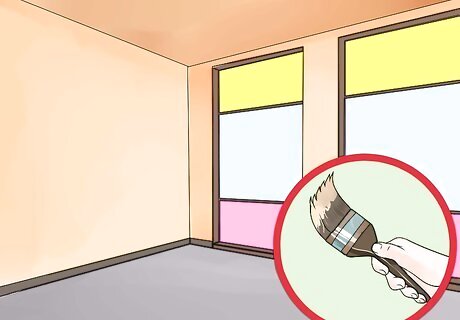 Paint the room. After the room has been remodeled you can now paint the walls, ceilings, or even the floor. Most paint can be easily applied with either a brush or a paint roller and can be a fun and easy way to change the look of a room. Work slowly and make sure you cover each area entirely to get a good finish. Paint brushes can be useful for corners or smaller areas that require a detailed approach. Paint rollers are best used in large areas as they can cover a lot of area quickly. Make sure you are wearing old clothes that you don't mind getting paint on.