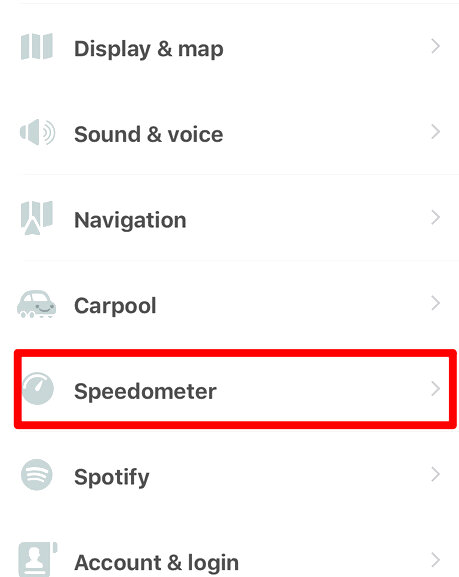 Tap the "Speedometer" option. You may have to scroll down some to find it. It will be between the Carpool or Navigation option and the Spotify option.