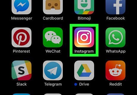 Tap the Instagram app to open it. The icon looks like a white camera outline on a purple and gold background. If you don't see the Instagram icon, swipe right on the screen and type "Instagram" into the search bar at the top. Tap the Instagram icon when it appears in the search results.