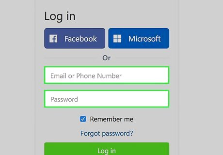 Enter your login details. In the boxes provided, enter either the phone number or e-mail address associated with your account, and then enter your password. If you are already logged in, you'll already be on a page displaying your chats.