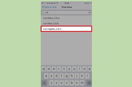 Tap the city name in the results. The time on your phone will adjust to the city selection.