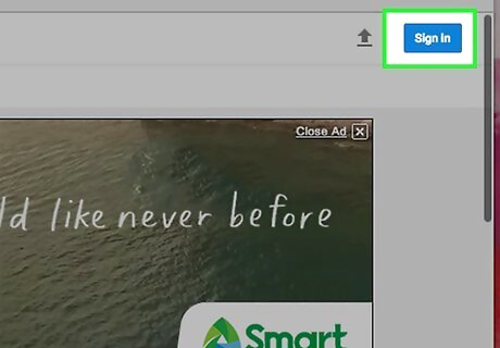 Click on Sign in. It's in the upper-right corner of the browser window.