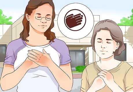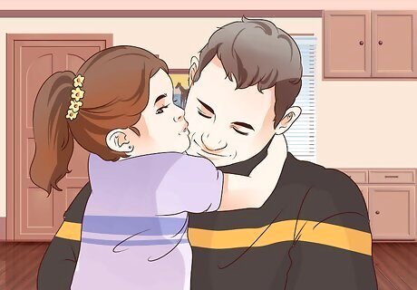 Hug your child. It may sound obvious, but hugs are an important way to comfort your child when he's feeling sad, stressed, or otherwise upset. Give your child a hug when he's feeling down, and don't let go until he does.