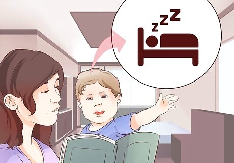 Try getting your child ready for bed. A calming bedtime routine is important for children, especially if your child is going through a sad or difficult time in his life. Make sure your child gets enough sleep and has plenty of downtime to unwind before bed so that he can wake up feeling refreshed and happy. Help your child unwind and de-stress before bed. Read a book together, talk about your respective days, or have him take a warm bath. Keep your child's room a comfortable temperature for sleep. Aim for somewhere between 65 and 72 degrees Fahrenheit (18.3 to 22.22 degrees Celsius), but go with whatever is most comfortable for your child. Remember that children need more sleep than adults. A child between the ages of 5 and 12 needs 10 to 11 hours of sleep each night.