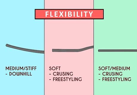 Decide on flexibility. Check whether the deck’s flexibility is rated as either soft, soft/medium, medium/stiff, or stiff. Expect “soft” to be the most shock absorbent (and ideal for cruising), with each rating growing gradually less so. However, if you intend to move beyond cruising, choose: Soft/medium for cruising and freestyling Medium/stiff for cruising and freeriding Stiff for downhill