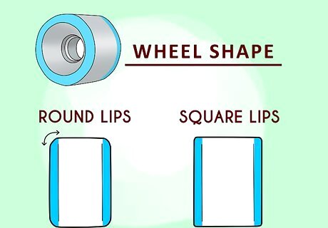 Pick the wheels' shape. Select from one of either two wheel shapes: square lip and round lip. Opt for square lip if all you’ll be doing is cruising. Otherwise, go with the round lip. Square lips have more grip on the ground, which makes them more ideal for simple cruising, especially if you’re a beginner. Round lips are better for more advanced styles because they respond faster when making tight turns or similar maneuvers.