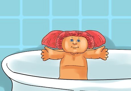 Take your darling upstairs to the bath and undress him/her. PRETEND to fill the bathtub with water and give it a fake wash. Try not to get soap in your cuties eyes!! When you're done wrap them in a fluffy towel and get them in their pajamas