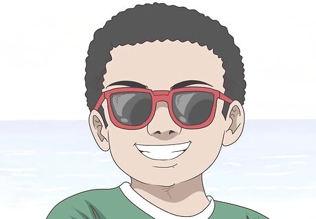 Get your child a pair of UV-blocking sunglasses. You also need to protect your child’s eyes, so make sure they wear sunglasses at all times when they’re outdoors. Look for a pair of children’s sunglasses that block 100% of UV rays. Then, teach your child to wear them whenever they’re in the sun. Let your child pick out their sunglasses so they’re more likely to wear them.