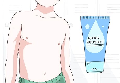 Pick a water-resistant sunscreen to protect kids while swimming. This type of sunscreen will provide sun protection for 40-80 minutes while your children are in the water. To extend the protection, you’ll need to reapply it often. Check the label to make sure your sunscreen says it’s water-resistant. Keep in mind that this is not the same as being water-proof. No sunscreen is water-proof, but water-resistant formulas will protect your kids better while they’re swimming.