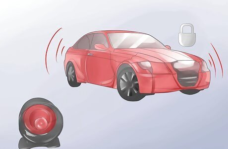 Invest in a car alarm. These are the most visually effective anti-theft devices. Sometimes drawing a potential thief's attention to the fact that your car has an alarm system is enough to deter them. So, be sure to put a sticker in the window, on both sides, proudly proclaiming you have a car security system activated. Car alarms feature electronic sensors designed to activate when a vehicle is breached: unauthorized entry, breaking of glass, sudden movement, and perimeter violations. When a threat is detected by the sensors, a siren activates (at over 120 dBs), alerting the car's driver and everyone else within earshot. Price Range: Low End: $150, High End: $1,000. Be wary of older, cheaper car alarms, flexible-circuit alarms, and single-stage sirens, which are too easily triggered, and may come at the expense of your neighbors' friendship. Always hook your car alarm up to a backup battery and/or invest in a hood lock. Many car thieves know how to unplug a car alarm's battery, which will silence it. Even if you don't have a car alarm, you can buy & apply stickers proclaiming your vehicle is protected by an alarm. The thought of a security system should make any thief choose another victim!