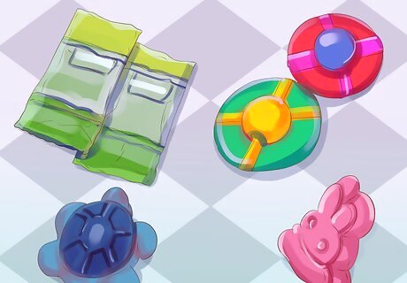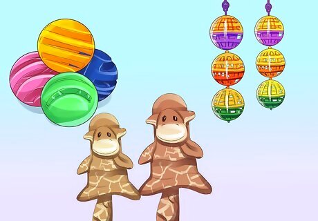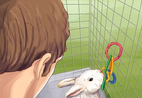 Get baby toys for your rabbit. Rabbits love baby keys, stacking cups, rattles, and colorful linked plastic toys that are made for human infants. Rabbits basically love any toy made for a baby that can fit into their cage or play area. Wooden baby toys are especially good for rabbits. They tend to be made of hard wood and they should be untreated or treated with non-toxic sealants.