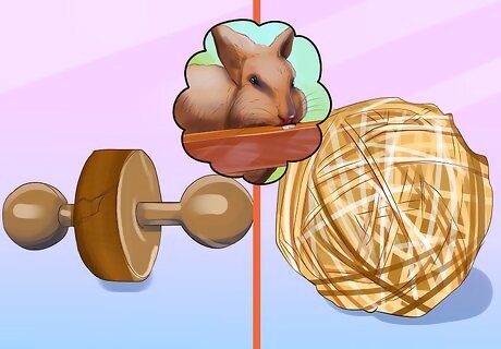 Find chew toys. Rabbits need lots of chew toys, so they can wear down their teeth. They chew on just about anything they see but there are some things that are better for them to chew on than others. Some chew toys that are made for rabbits include: Wooden rabbit chew toys Compressed chew cubes Willow balls
