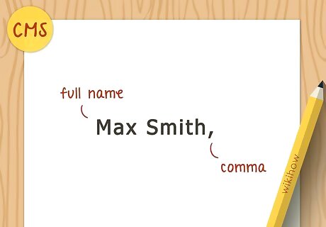 Write the full name of the author followed by a comma. Write the first name of the author and then the last name, followed by a comma. The style illustrated here is for footnotes and endnotes. Bibliography citations are addressed later in this method. For example: Max Smith, If you have multiple authors, list them alphabetically by last name using the same format. Separate each name with a comma, and use the word “and” before the final name. For example: Max Smith, James Yank, and Krista Zee,