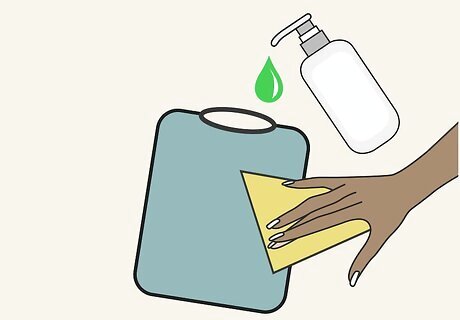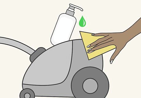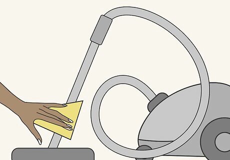 Wipe the base with a soapy rag or disinfectant wipe. Clean the handle, plastic back, and the bottom piece with your cleaning cloth. Scrub areas where there are holes or places where debris can hide. Clean the base while the canisters are detached from the unit.