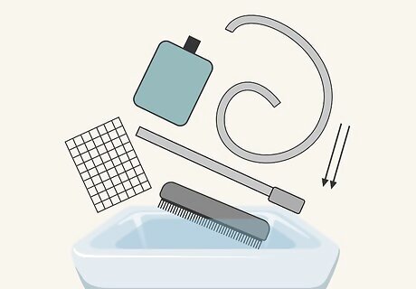 Remove and wash all attachments and accessories. If your vacuum came with additional attachments and accessories, remove them from the machine to make the cleaning process easier. You can wash all non-mechanical accessories, including small plastic pieces and small brushes. If you have a dishwasher, run the items through a wash while you continue cleaning the rest of the machine. If you don't have a dishwasher, wash the accessories in soap and cool water.