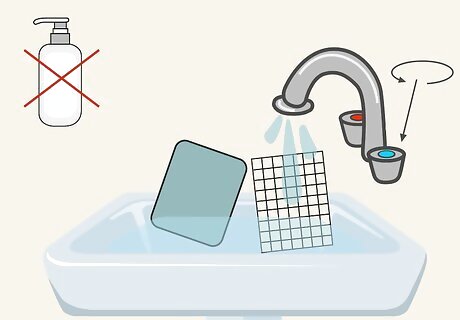Wash the filters in cold water with no soap. Do not add any kind of soap or detergent when cleaning your filters, and don't process them through any type of washing machine or dishwasher. All you need to clean the filter is running water. Expect to rinse your filter up to 10 times. When washing filter A, wet the filter under running water and then squeeze the water from the filter. When washing filter B, let the water run over the filter, then gently tap it on the side of the sink to remove the water.