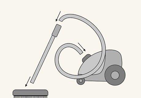 Clear blockages from the wand and hose. Look for blockages in the wand, hose, and the inlet where the hose joins the vacuum. Gently remove any stuck debris from the vacuum. You can wash the wand and hose in warm, soapy water. Allow them to dry before reattaching them to your machine.