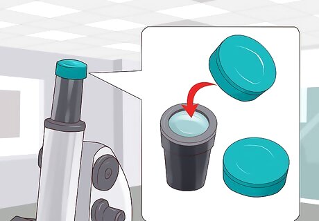 Put a cover on your microscope whenever you put it away. Use the dust cover provided by the microscope manufacturer for best results. However, if you no longer have this cover, you can also use a plastic bag to protect the microscope from dust. For greater protection, use 2 plastic bags instead of just 1 if you don't have the original dust cover. Place both of these bags over the microscope and tie the outer bag closed to prevent dust from getting inside. Refrain from putting your microscope in a dusty environment, such as a storage closet, since this will only make your microscope more likely to get dusty.