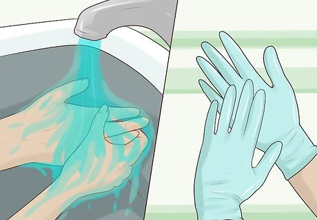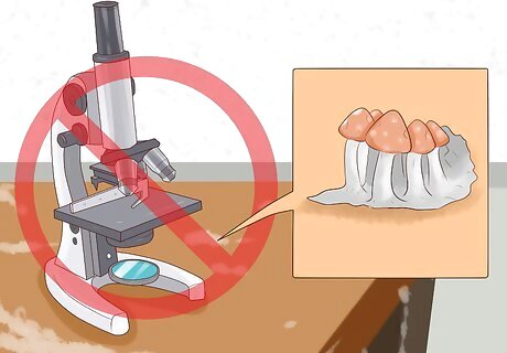 Wash your hands before handling your microscope. Remove any grease, dirt, or oil on your hands before touching your microscope to keep it from getting dirty. For best results, wear clean latex gloves whenever working with your microscope. This is also very important if your microscope is being used by multiple people, since each person's hands may pick up the bacteria left behind on the microscope by someone else. To keep your microscope as clean as possible, avoid eating with your hands immediately before you use the microscope and certainly don't eat or drink while you're using it.