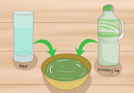 Make a cleaning solution out of water and a small amount of dish soap. In a small container, mix warm water with a few drops of dishwashing soap. This will be a strong enough cleaning solution for most microscopes. The solution only needs to be a little sudsy, so err on the side of adding too little soap rather than too much. If your microscope is particularly oily or dirty, use a larger ratio of dish soap to water or add a small amount of 10% alcohol by volume to the solution. If your microscope isn't very oily or hasn't been used that much, you may be able to clean it with just warm water.