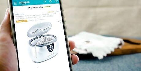 Test out an ultrasonic sound wave cleaner if you don’t want to use steam. Invest in an sound wave cleaner if you find yourself cleaning your white gold jewelry often. Additionally, this is a great option to consider if you don’t want your white gold ring to get wet. Follow the instructions that come with the device and place the ring in the machine for the recommended amount of time. Ultrasonic jewelry cleaners are available online, with prices starting at $40.