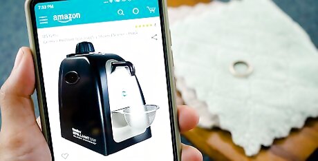 Clean your ring with a specialized steam cleaner. Use an at-home machine designed specifically for cleaning a variety of jewelry. To start the cleaning process, fill the designated tank with tap water. Next, follow the manufacturer’s instructions on how to place the ring into the machine. Wait for the cleaning cycle to finish before taking the ring out of the steam cleaner. These devices can be purchased online for as little as $50.