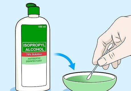 Wet the swab with 70% isopropyl alcohol to remove stubborn dirt. Dip the end of your cotton swab into isopropyl alcohol and shake off any excess drops. Apply light pressure as you rub the alcohol onto your earphones. Rewet the swab as it dries out, and use a new cotton swab if the old one gets dirty so you don’t keep spreading the dirt around. You can buy isopropyl alcohol from your local drugstore. It may also be labeled as rubbing alcohol. Be careful not to get the alcohol inside any electronic ports in your Powerbeats since it could damage them. If you don’t have isopropyl alcohol, you can also mix a few drops of liquid dish soap in warm water instead.
