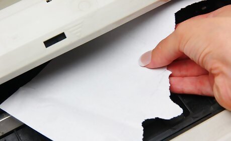 Pull out the sheets of paper that are jammed. Gently hold on to the paper and pull it out of the laser printer. Try to pull the paper in the direction that it normally feeds. Pulling it backwards can damage the laser printer's function. Remove all of the paper and scraps. Do not leave anything behind that can cause additional jamming.