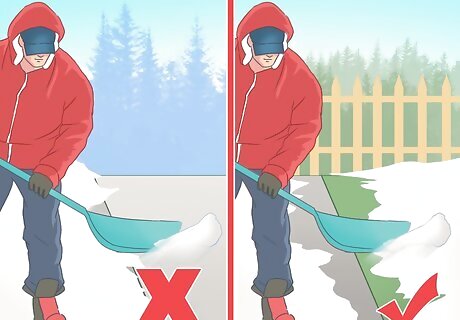 Watch where you put it. It’s not a good idea to just shovel snow into the street or to whip it into your neighbor’s lawn. Be respectful of others. You should also be careful not to block drains. Putting snow into the street can cause a driving hazard for motorists. Shoveling it from your driveway into the sidewalk can run afoul of city ordinances. It’s a better idea to shovel it from the pavement onto the yard itself. You’re not going to be able to use it in the midst of a deep winter anyway. You want to make sure you don’t create another hazard in the process of removing one. Plan ahead at the beginning of the winter to determine where you will shovel your snow. Snow storage has to last all winter, so planning ahead will save time and energy.