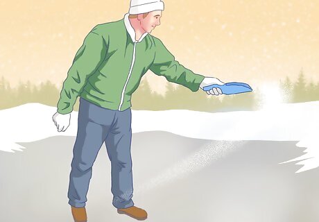Shovel frequently. Don’t wait until the storm is over because the snow and ice will have a chance to bond to the pavement, making it harder to remove later. You could always pay a neighbor kid to shovel for you. The key to success when having to remove snow by hand is to start as soon as possible. You should shovel several times during a storm. It’s also easier to shovel less early fallen snow than thicker deeper snow, so do the shoveling in parts. Avoid heaping the snow against foundation walls, where it can melt, refreeze, and cause problems. You want to shovel down to the pavement so that the sun’s rays will hopefully hit it and stop ice from forming on the pavement or public space. Another reason to remove the snow right away is because it will be harder to do so once it’s packed down by foot traffic or vehicles.