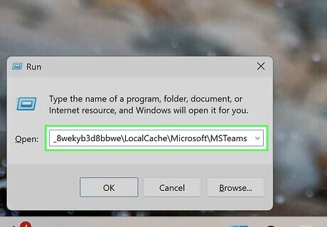 Enter the path to Teams' local cache. This path is: %userprofile%\appdata\local\Packages\MSTeams_8wekyb3d8bbwe\LocalCache\Microsoft\MSTeams. You don't have to change anything in this path to get to the right location; the variable "%userprofile%" will automatically fill in your Microsoft account name. Press ↵ Enter to run the command.