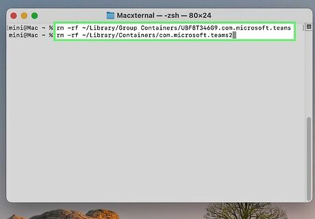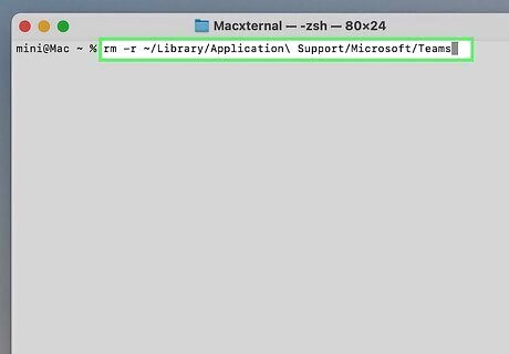 Run the cache deletion command. Copy and paste the following command into Terminal, pressing ⏎ Return after the command to run it. rm -r ~/Library/Application\ Support/Microsoft/Teams