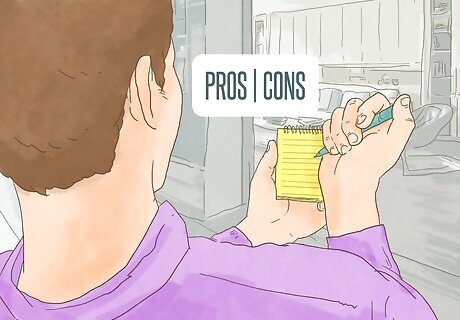 Create a comparison chart. It may help to get out a piece of paper, draw a line down the middle, and write consolidation on one side and settlement on the other. Then, write down the pros and cons for each option below the headings. Look over the chart to get a summary of your current situation. For example, under a “Consolidation,” you might put, “only one bill to pay.”