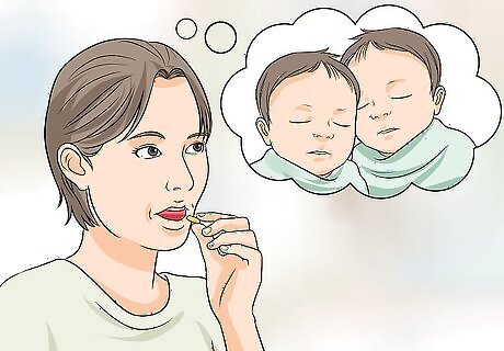 Up your intake of folic acid before you conceive. It's recommended that all women take folic acid both before they begin trying to get pregnant and during their pregnancies. Some studies have also found that taking folic acid before you've conceived can increase your chances of having twins. When taking a folic acid supplement, don't take more than the recommended daily amount (usually one pill per day). If you want to add more folic acid from natural sources, eat foods like spinach, asparagus, fortified grains and cereals, broccoli, and citrus fruits.