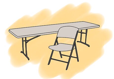Set up the place where you will be conducting your Bible study. That means tables, chairs, (optional) Bibles, notebooks, pens, and folders.