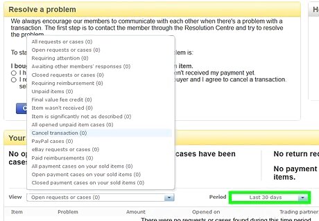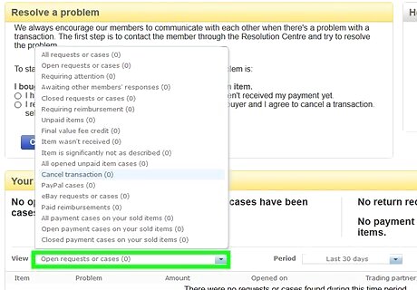 Select the item you want to open a case on. The Resolution Centre will show you your recently purchased or sold items. Click the one you are having an issue with, and then choose "Open case." That will open a case on this purchase between you and the seller or buyer.