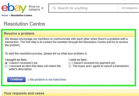 Choose the best description of your problem on the page. On one side of the page, you'll see problems for buyers. On the other side of the page, you'll see the same for sellers. Read the descriptions below these categories to pick the one that best describes your problem. For instance, if you've bought something, you might choose "I haven't received it yet." or "I received an item that doesn't match the seller's description."