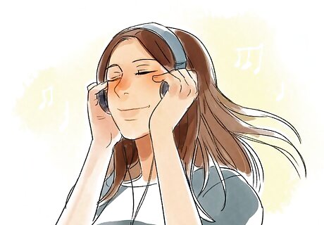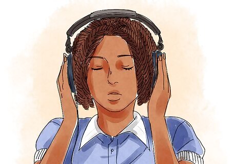 Listen to calm music. Before you go to school or another place that you feel angry, listen to calming songs. You can even make a playlist on your MP3 player or phone with songs that make you feel calm, confident, or happy. Take deep breaths while listening; this will calm you down more. Try songs like Dan Wilson's "All Will Be Well," "Brave" by Sara Bareilles, or Bob Marley's "Three Little Birds." Some people with anxiety say that songs like these help them to stay calm when they're feeling upset.