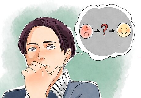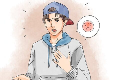 Take deep breaths and think about something else. As you feel your body warning you that you are becoming angry, try to calm yourself down right away. The more your body becomes agitated, the more difficult it will be to calm down. Breathe in through your nose as deeply as you can as you count to five. Then, breathe out through your mouth as you count down from five. Repeat this a couple of times.