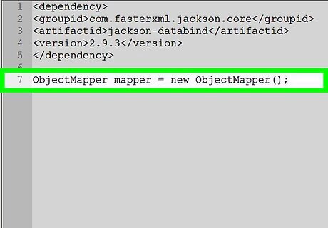 Type the objectmapper code. This will start the objectmapper class of the Jackson library. ObjectMapper mapper = new ObjectMapper();