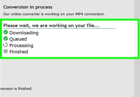 Wait for the converted file to begin downloading. Your WMV will be uploaded to the website and converted into an MP4 file, after which point it will begin downloading back onto your computer. Depending on your browser's settings, you may have to select a save location or confirm the download before the file will download.