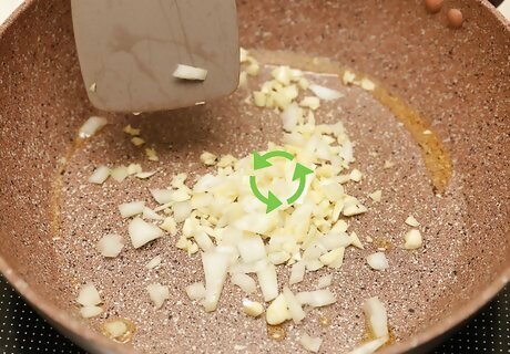 Sauté the minced garlic and diced onion in a large skillet. Mince 4 cloves of garlic and finely dice 1 medium onion. Heat 2 tablespoons of butter and 2 tablespoons of olive oil in a large skillet over medium heat. Add the garlic and onions to the skillet. Sauté for approximately 1 minute.