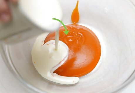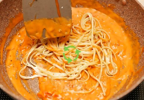 Combine both sauces together. Pour both the marinara and Alfredo sauces straight from their jars into a large mixing bowl. Using a big mixing spoon, stir them together until well blended. The red and white sauces will combine to create a creamy orange-red hued sauce.