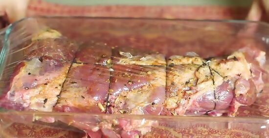 Refrigerate the roast overnight. Place it in a baking dish, cover it with plastic wrap, and set it in the refrigerator so the salt and spices can meld with the pork overnight.