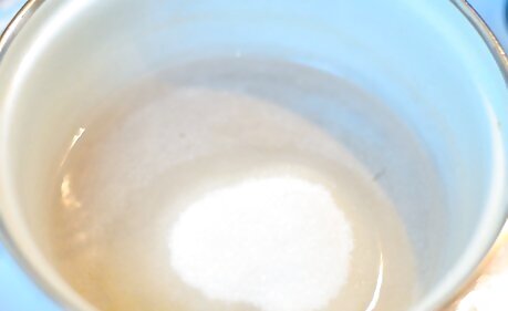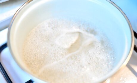 Heat 1 cup of water and 2 cups of sugar over high heat. Heat this mixture, stirring the sugar and water together, until it comes to a boil.