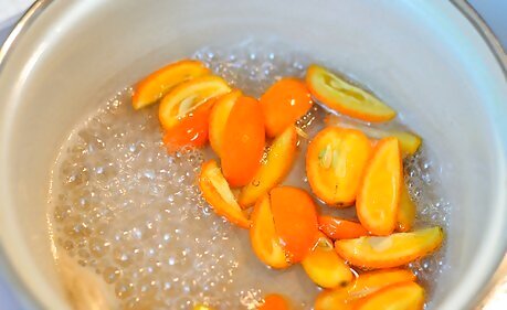 Bring the fruit mixture to a boil. Then, reduce the heat and let the fruit simmer until the rinds are very tender.