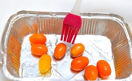 Place the kumquats on a baking pan on the upper rack of the oven.